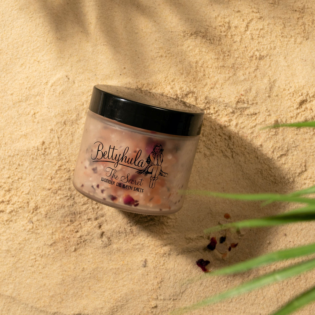 Soak in a Secret Bath.  Himalayan salts are considered one of the healthiest salts on earth containing more than 84 minerals known for their detoxifying properties. Combined with ‘The Secret Wonder Oil’ which has a rehydrating blend of Frankincense Oil, Apricot Kernel Oil, Avocado Oil, Jojoba Oil, Vitamin E and Rose Absolute - it will leave you relaxed and rejuvenated.
