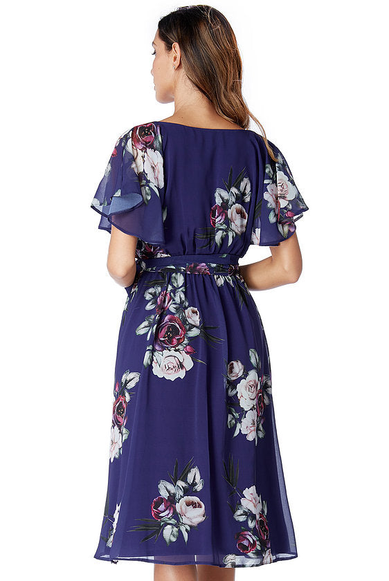 Floral Print Midi Dress with Flutter Sleeves