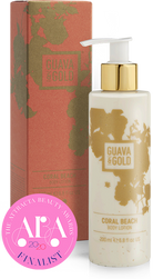 Enhanced with avocado and grapeseed oils, shea butter and guava fruit extract, this rich and soothing body lotion is easily absorbed for well-hydrated, silky smooth skin delicately scented with Guava & Gold's unique Coral Beach fragrance. SPF15 gives light sun protection throughout the day.