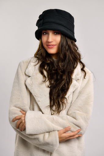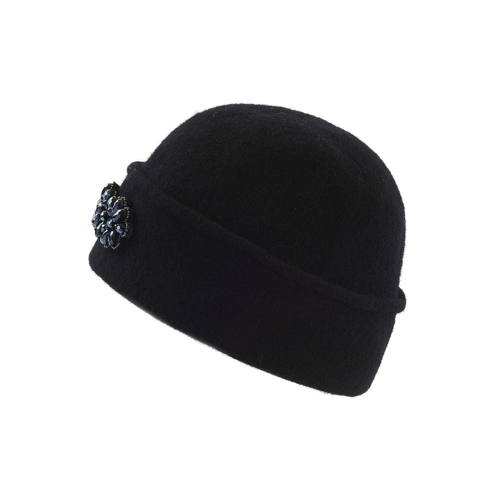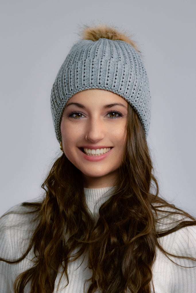 Knitted Hat with Rhinestone Trim in Light Grey Melange