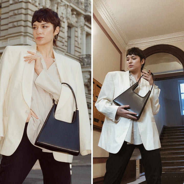 Our most popular handbag, called-in the most by celebrity stylists. Make an elegant and confident statement with our Jiyo Black Bag. Perfect for casual and formal purposes. Wear over-the-shoulder or hold in hand.