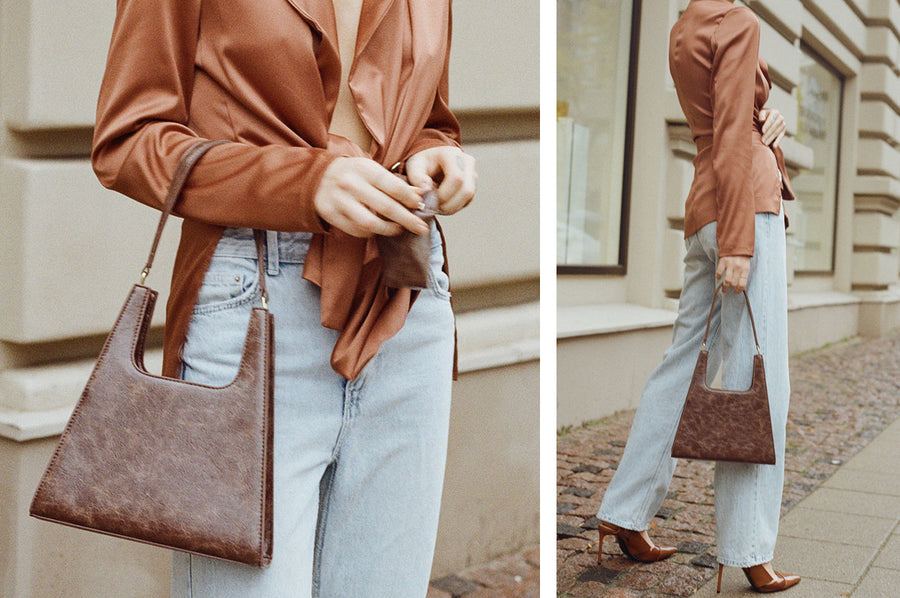Make an elegant and confident statement with our Jiyo Brown Bag.  Perfect for casual and formal purposes. Wear over-the-shoulder or hold in hand.