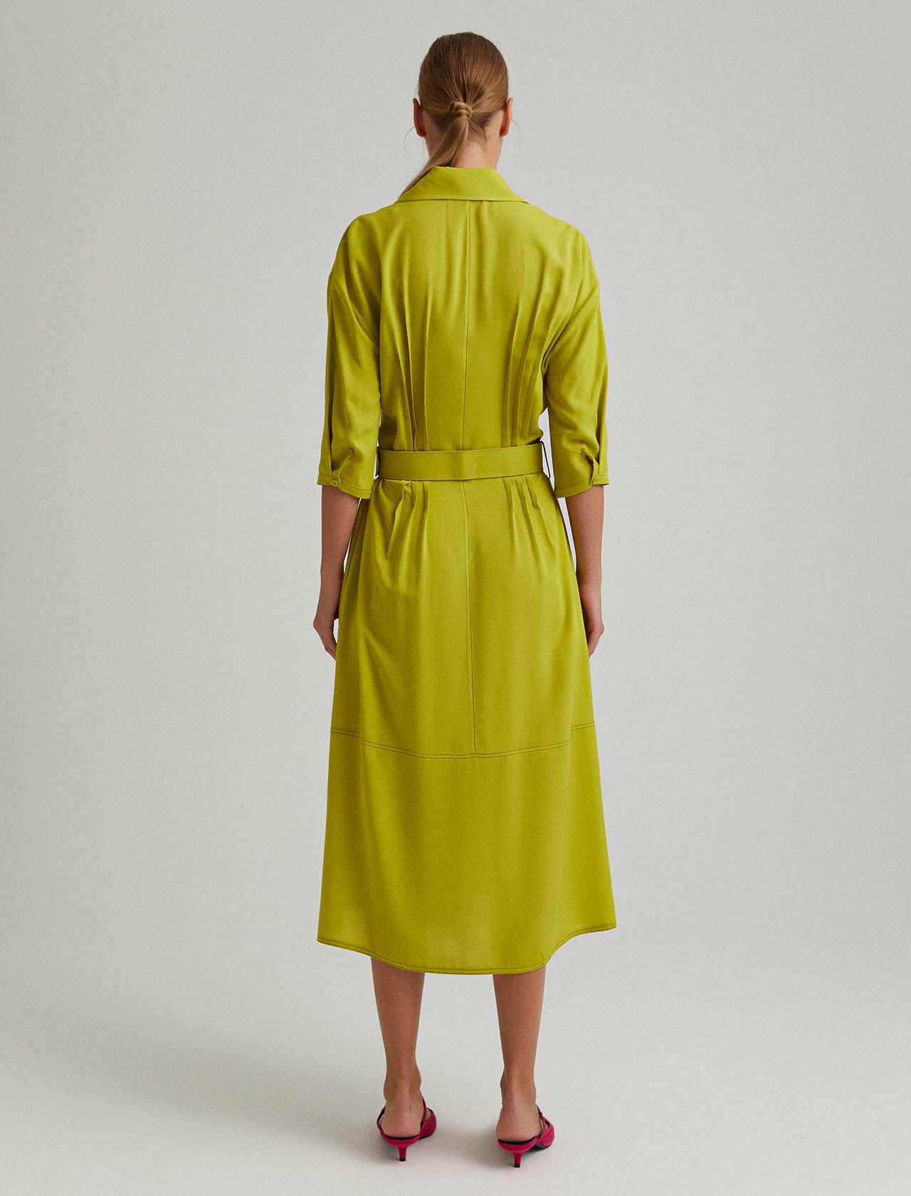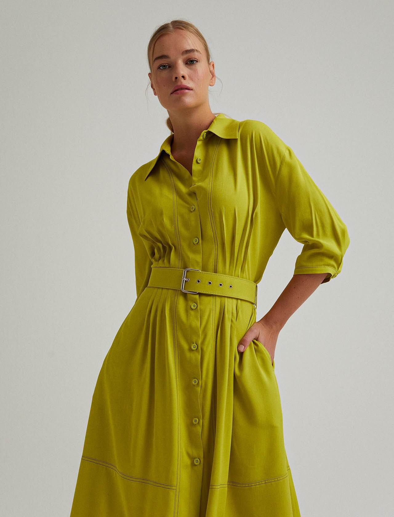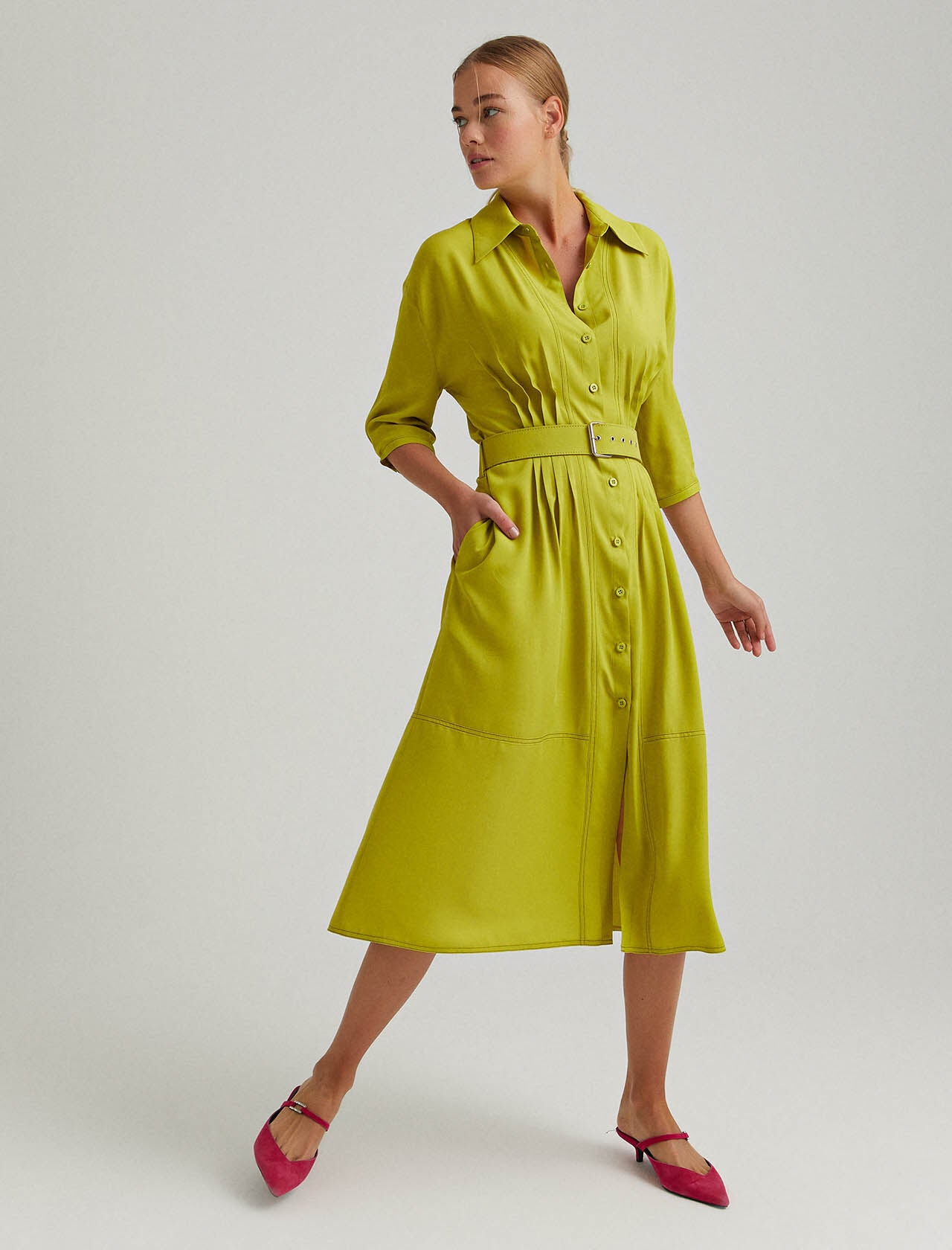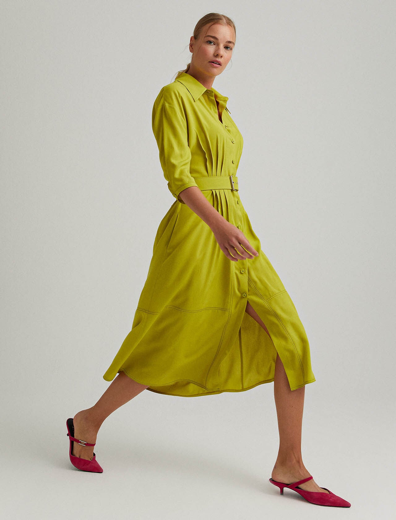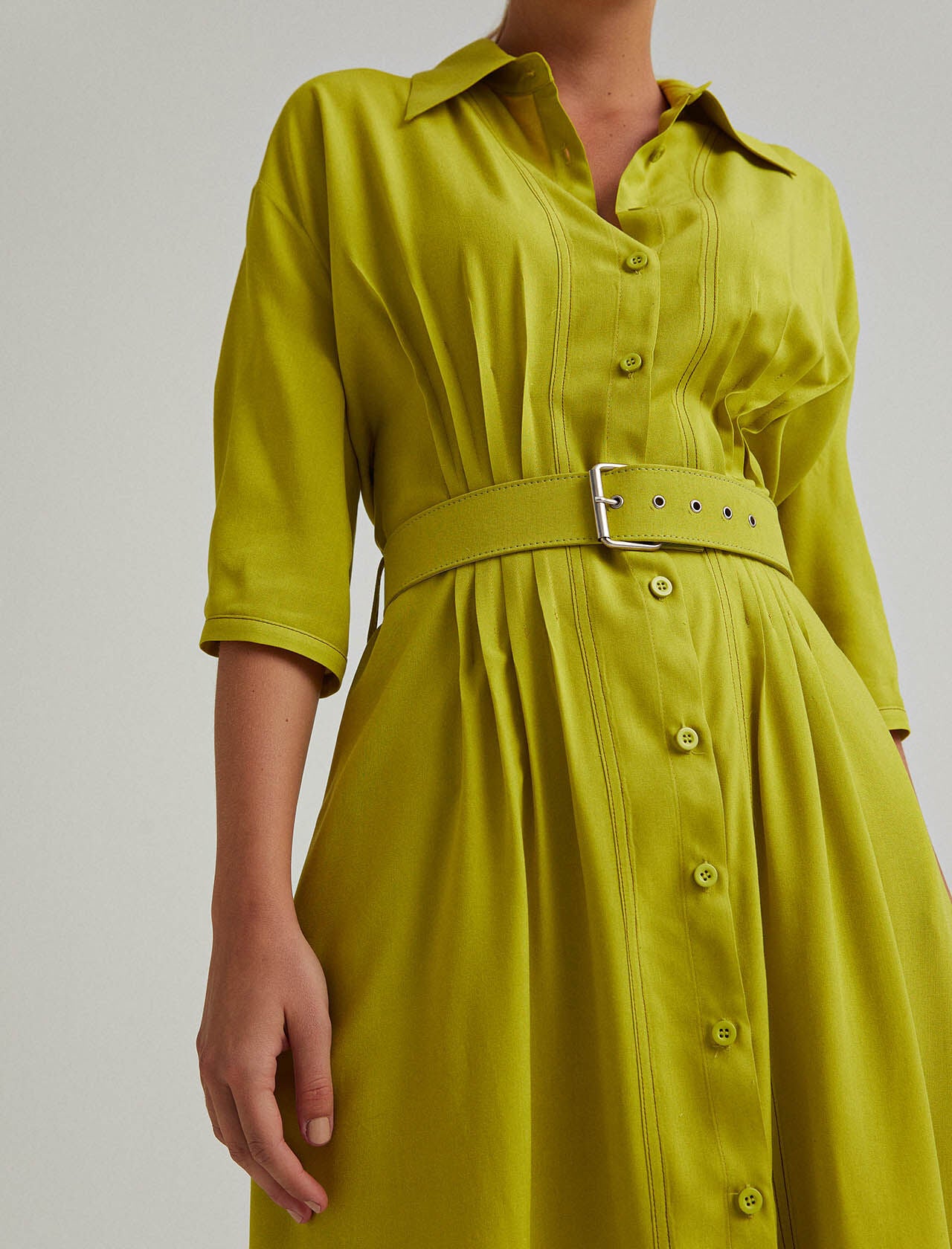 Belted Midi Dress in Lime