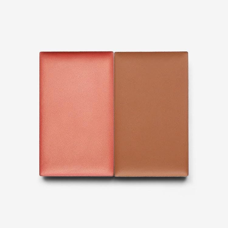 This travel-friendly, refillable palette contains our bestselling cream blush and bronzer duo to add warmth and dimension to your face in two quick steps. Begin by using the bronzer to sculpt the contours of your face, then add colour to your cheeks with a swirl of blusher. Our easy-to-use refill system means that when your pans are used up, you can simply swap in a fresh one. Just push the provided pin through the hole at the back of the palette until the used makeup pan pops out. Insert the new pan and recycle the old one!