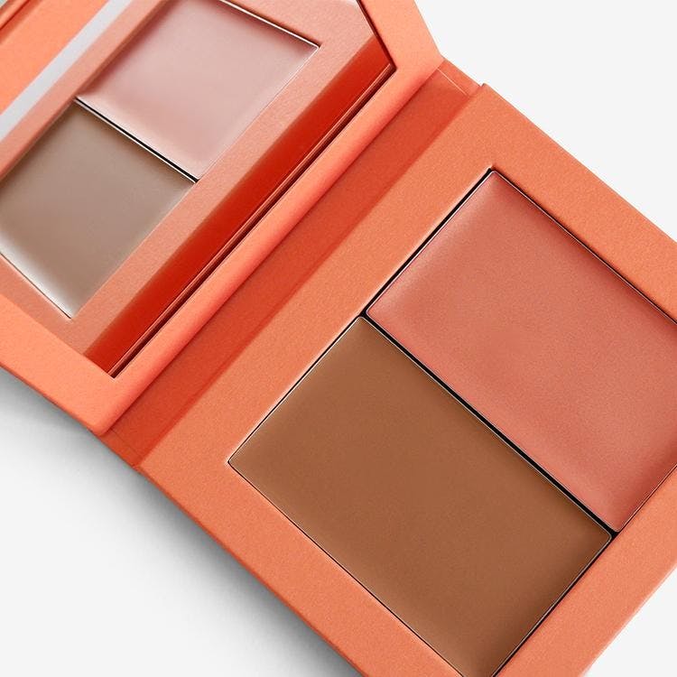 A Magnetic Refill Palette, stocked with our game-changing 'melts into skin' cream blush in the shade 'Calypso' and our ultra-pigmented cream bronzer in the shade 'Tuscan Sun'.