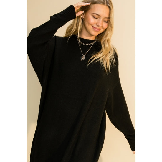 Mock Neck Midi Sweater Dress in Black