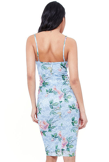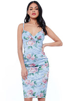 Pleated Bust Floral Midi Dress