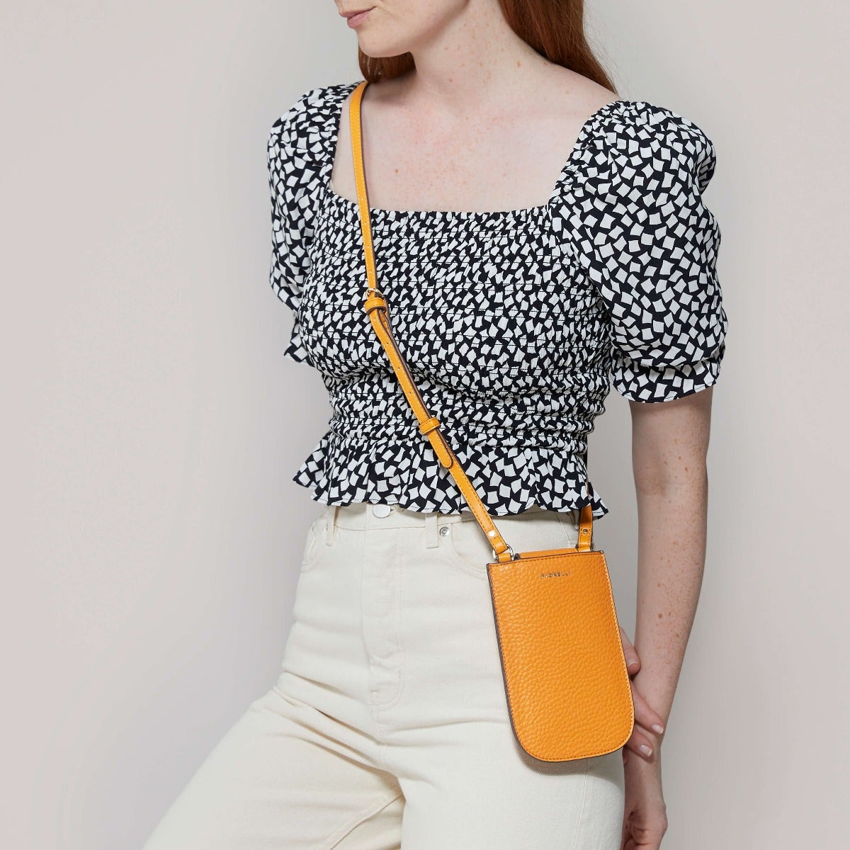 The Kristen phone pouch will keep your cards and phone easily accessible when you want to travel light. Elevate your daily essentials with this light weight and functional phone pouch.