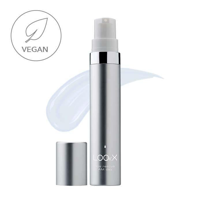Immediately reverses moisture loss, freeing skin around the eyes from dry lines. The refreshing formula invigorates the eye and replaces tired with radiant. The skin’s texture is refined by gold nano-peptides that provide optimal hydration and firming. LOOkX Eye rescue AM also protects the delicate eye area from harmful external influences such as gases, dry air from heaters, harsh weather and UV radiation.