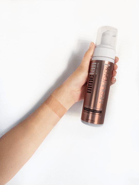 Achieve subtle bronzed, glowing skin in as little as an hour with MineTan Medium Dark Self Tan Mousse. The Triple Action Formula deeply hydrates while working to develop a deep natural looking skin finish.