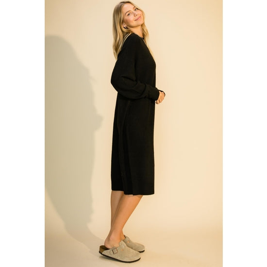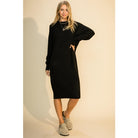 Mock Neck Midi Sweater Dress in Black
