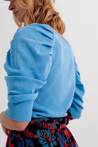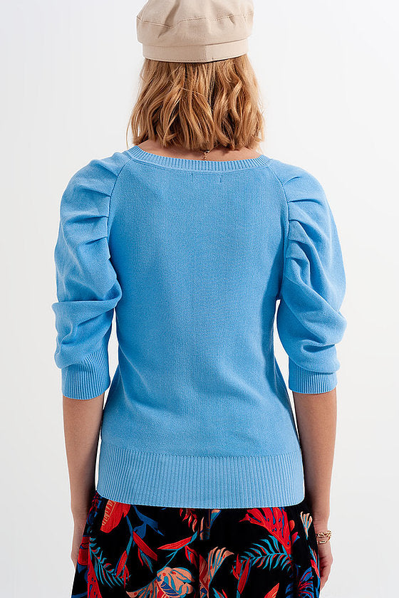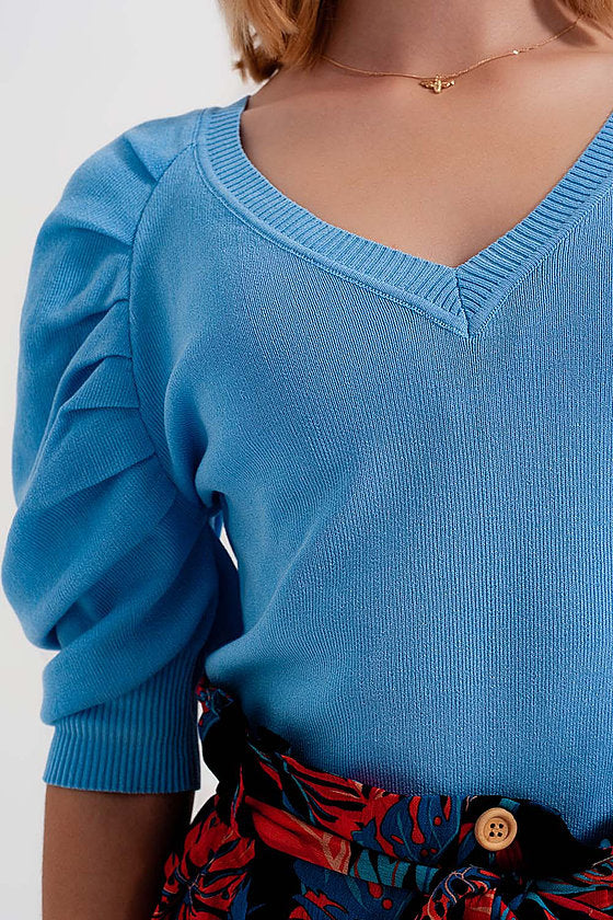 Pleated sleeve sweater - blue