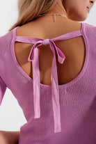 Rib Knitted Sweater with Tie Back - Pink