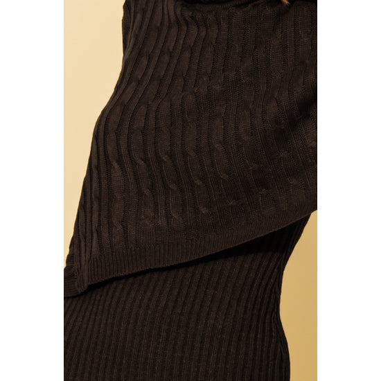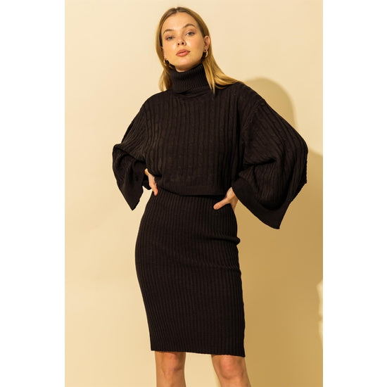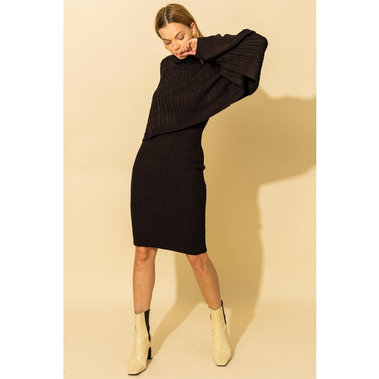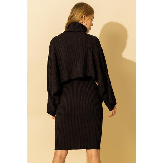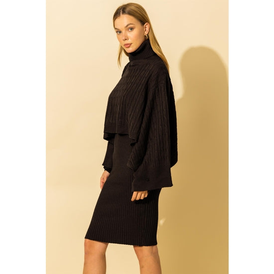 Turtle Neck Poncho and Sweater Dress in Black - Set