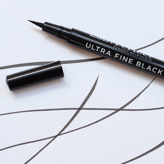 The Ultra Fine Black Eyeliner is ideal for creating dramatic eyeliner looks. Its fine 'felt' tip allows for the precise application of the liner, ensuring a flawless look.