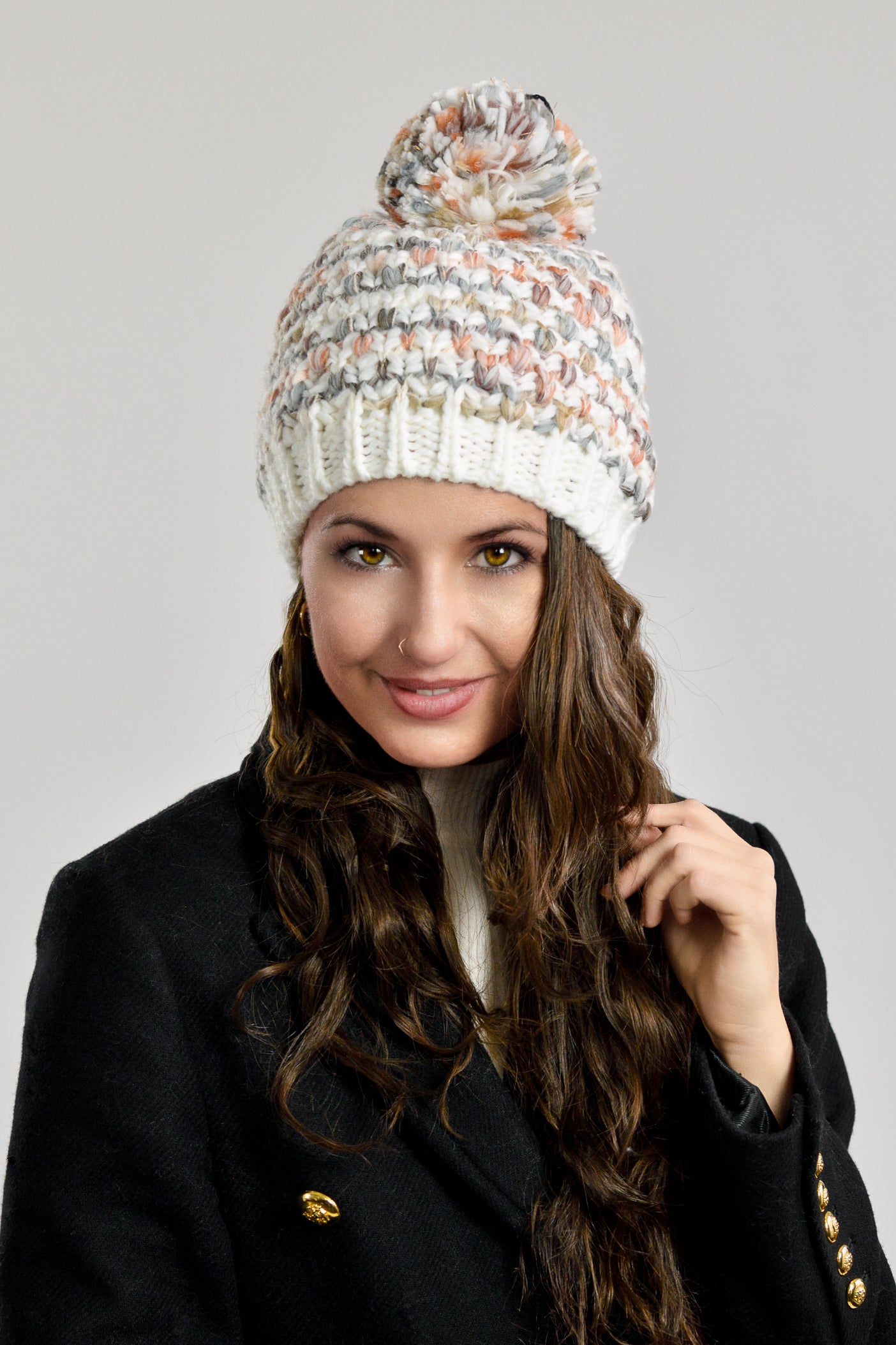 Fashionable knitted hat made of special multicolour yarn