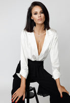 Tailoring meets modern femininity in this effortlessly chic blazer. Crafted from 100% pure white silk, it is understated sophistication at it's best.