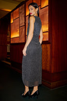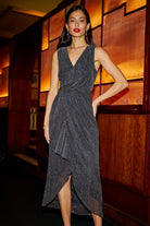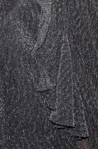 Black Metallic Pleated Frill Wrap Midi Dress