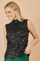 Need a top for every special occasion this season? In all over sequins you will dazzle and shine. The high neck design is elegant with a keyhole fastening for an easy fit. Wear with denim or satin skirt for the ultimate cool party girl look.