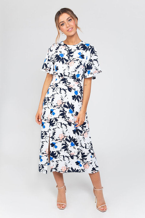 Kimono sleeve chiffon dress. Midi/maxi length (depending of your height).